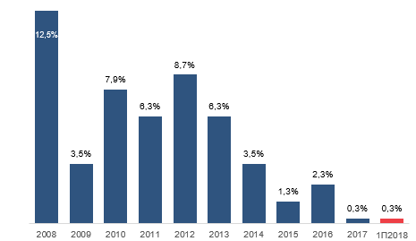 С начала 2018 года было введено в эксплуатацию всего 2 торговых центра суммарной площадью в 13 000 кв.м