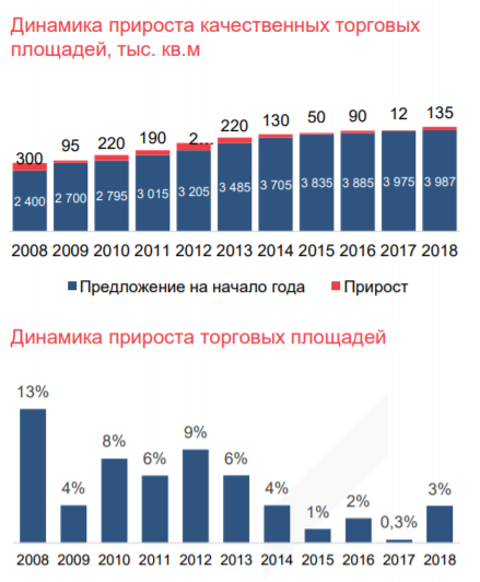 В первом полугодии были введены ТЦ «Перрон» (9 500 кв.м) и ТК «Индустриальный» (19 000 кв.м).